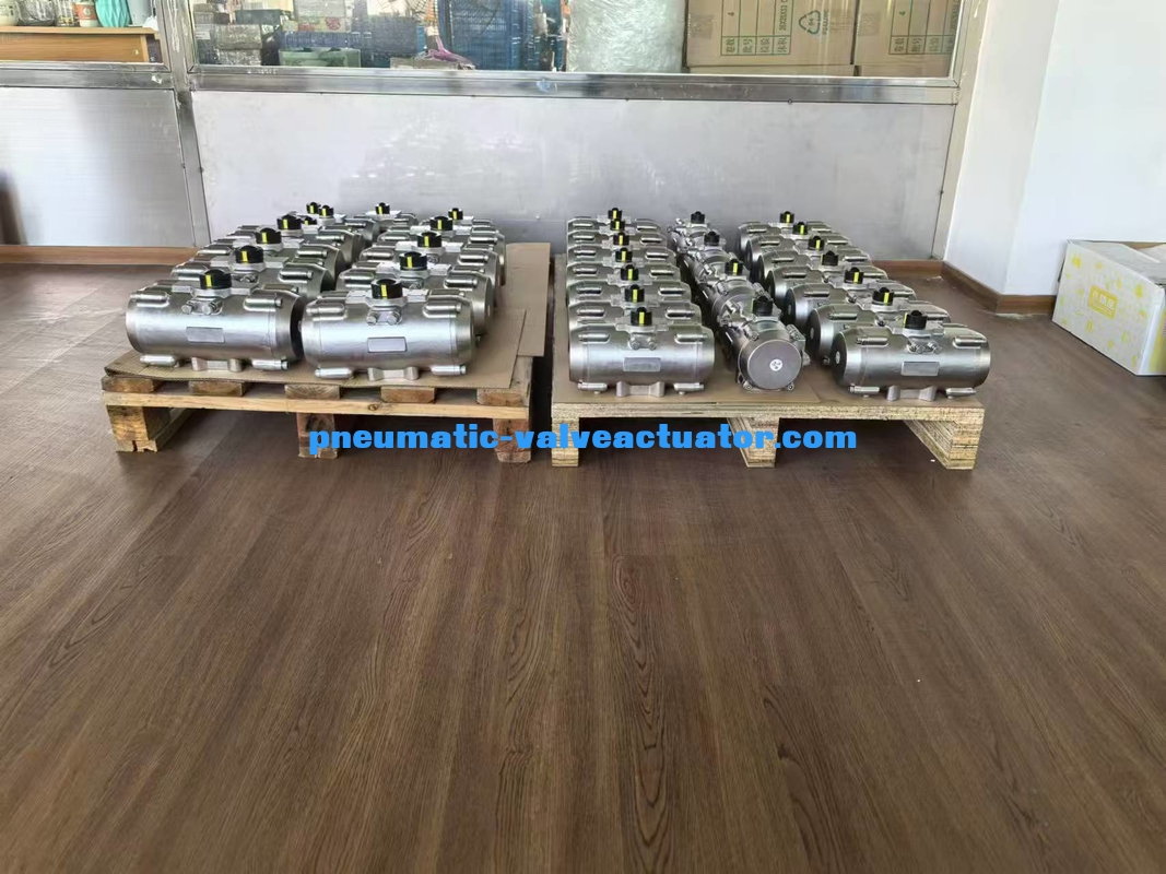 स्टेनलेस स्टील वायवीय एक्ट्यूएटर अलग से डिब्बों, लकड़ी के पैलेट या लकड़ी के मामलों में पैक किया गया।